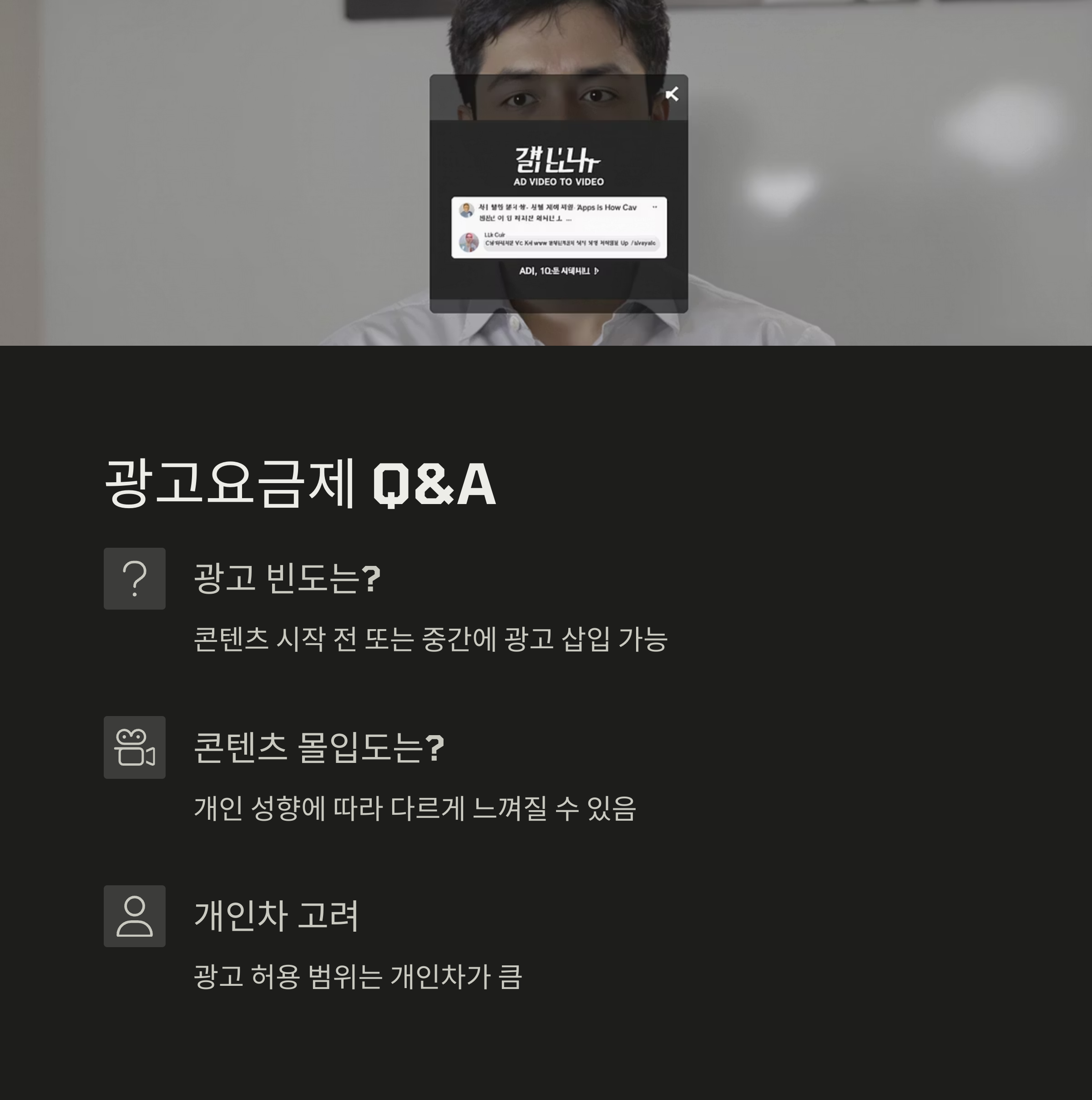 Q: 광고 시청이 콘텐츠 몰입에 큰 방해가 되지는 않을까요?