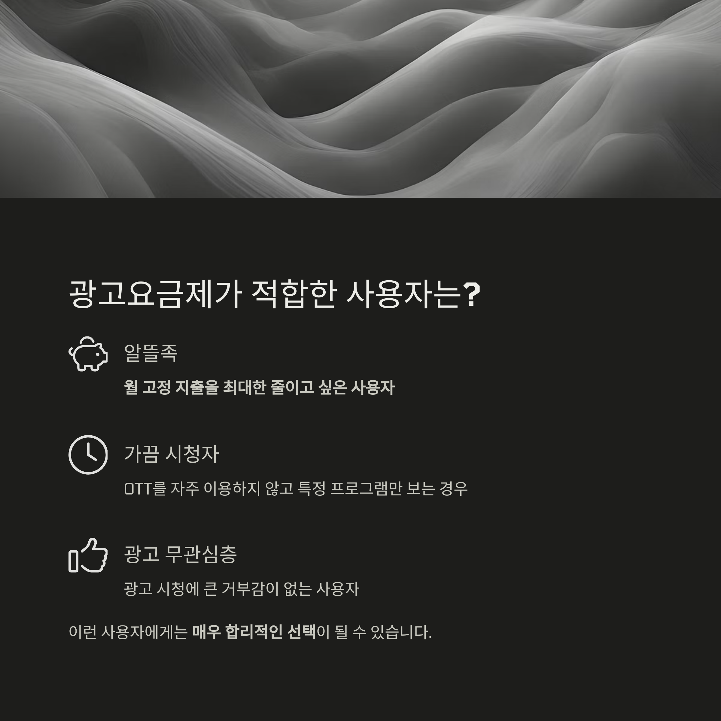 각자의 시청 습관, 예산, 광고에 대한 민감도 등을 종합적으로 고려해야 합니다.