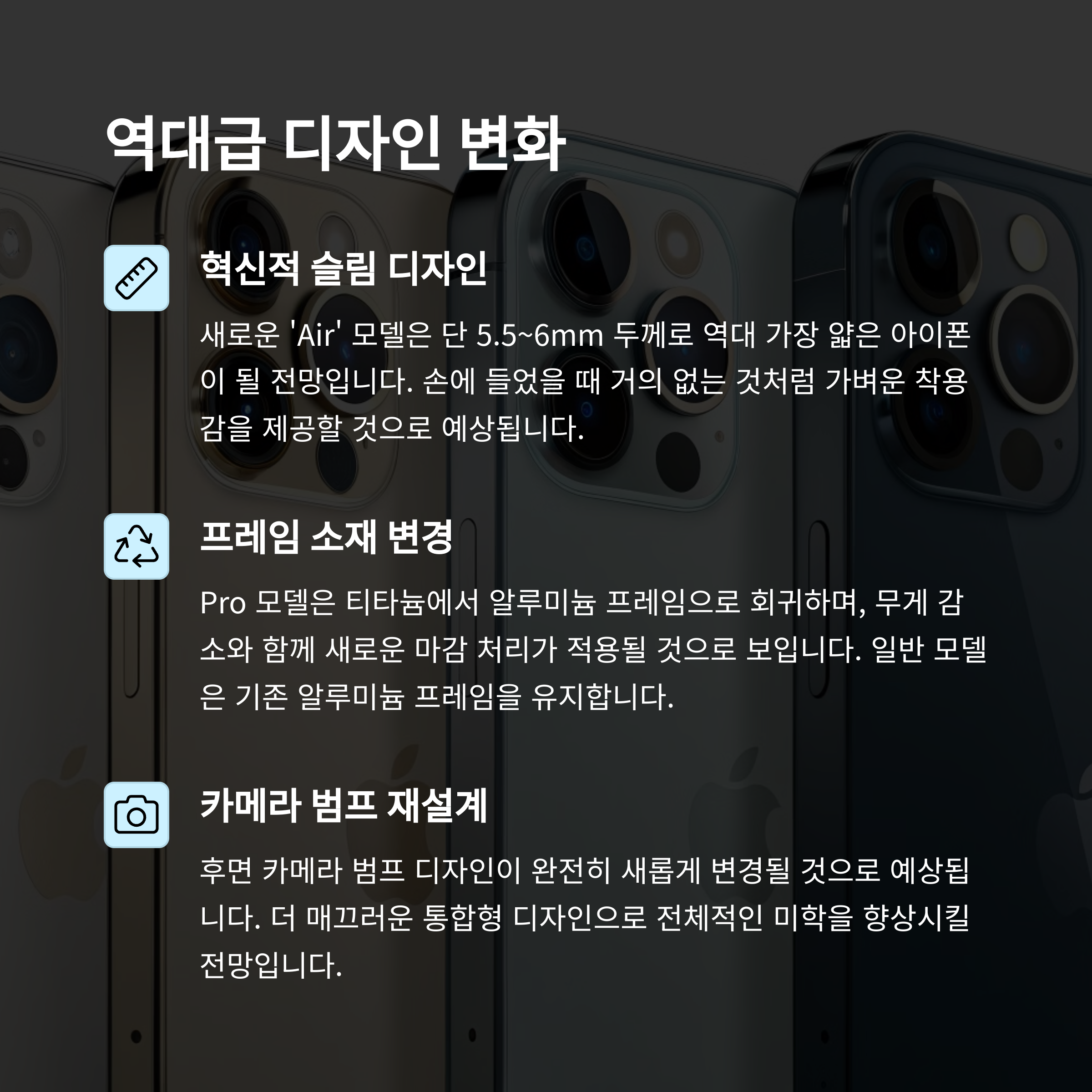 | 출시일 루머 | 에어 모델 | 카메라 변화 |